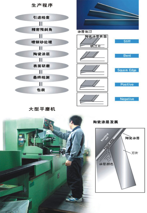 為了獲得最佳的刮除效果,刀片材料必須嚴(yán)格滿足技術(shù)要求,與刀片的性質(zhì)一致,并具有一定耐用度和硬度,刀片的外形必須盡快適合輥面,以便獲得最佳鏟刮效果。優(yōu)良的刀片特性將確保刀片在所有的生產(chǎn)條件下獲得最佳的使用效果。