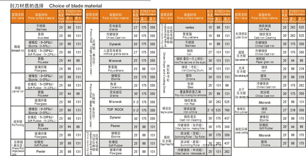 To achieve the best scraping results, blade material must satisfy the technologyrequirements, consist with the property of the blade and keep certain duration and hardness.The out shape of blade must adapt to the surface of the rollers to achieve the best shovelingand scraping result. The correct property of the blade ensures the best using effect under allproduction conditions.